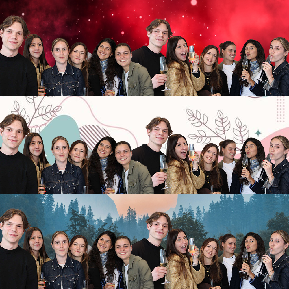 - Fond(s) personnalisé(s) : renforcez l’expérience photo grâce à notre intelligence artificielle (IA) et proposez à vos invités jusqu’à 12 fonds personnalisés via l’interface du photobooth. Notre service graphique vous propose un catalogue par thèmes, vous aurez également la possibilité d’intégrer des fonds créés par vos soins. Exprimez votre créativité.