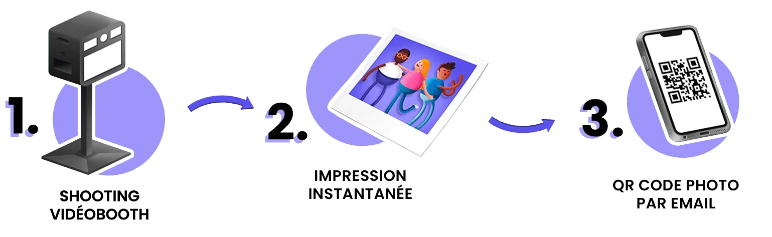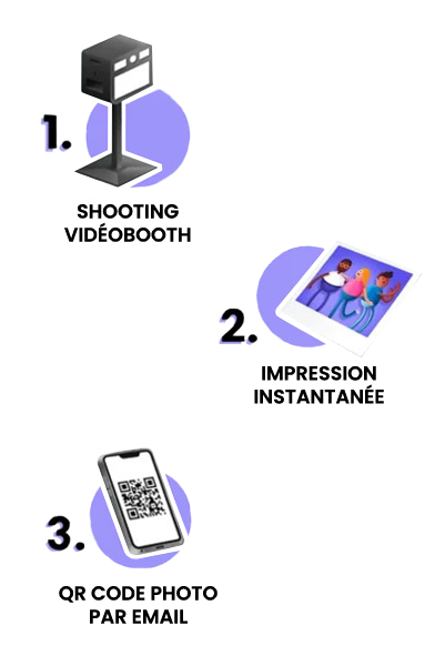 - QR code : cette solution moderne permet de récupérer rapidement votre vidéo au format digital afin d’éviter les files d’attente et optimiser la participation sur votre stand vidéobooth.